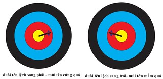 Nếu đuôi mũi tên nghiêng sang bên phải nghĩa là mũi tên cứng quá. Bạn cần làm nó trở nên mềm hơn bằng một hoặc nhiều cách sau: