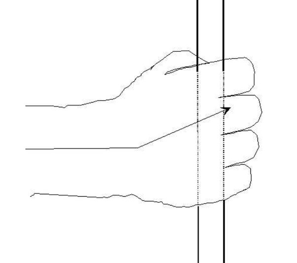 Nếu nắm thông thường ở giữa cung thì góc cầm sẽ như thế này.